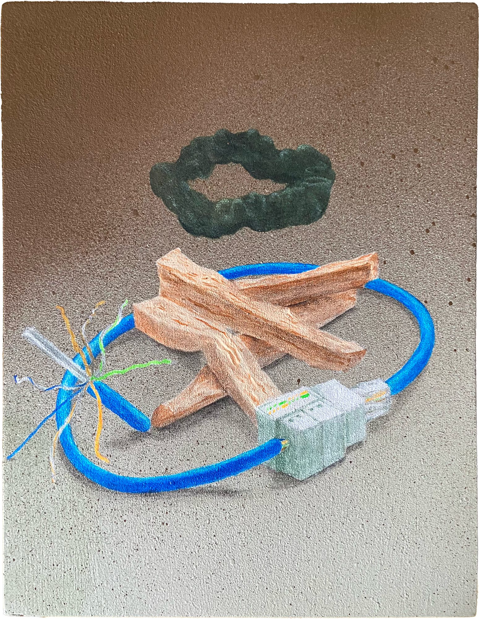 “Cat 6 Smoke Signal” 2021, acrylic & spray paint on wood panel, 8 x 6 in